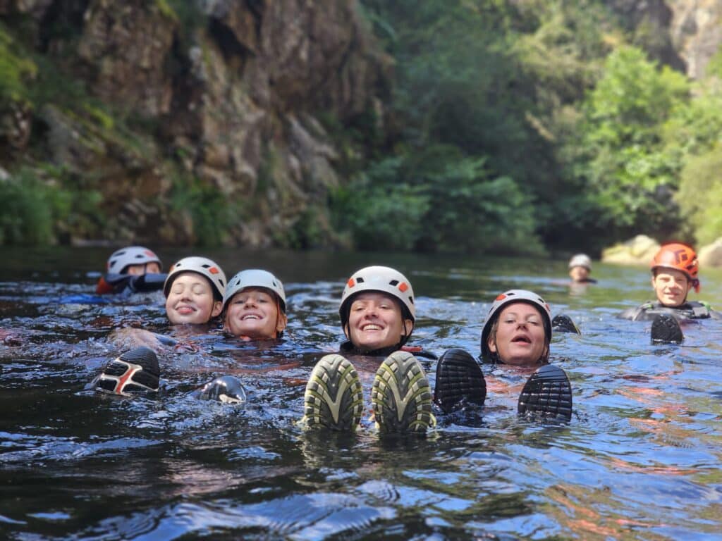 In de canyon begeleiden we iedere passage stap voor stap. Bij sprongen en wildwaterstukken krijg je duidelijke instructies en waar mogelijk alternatieven.